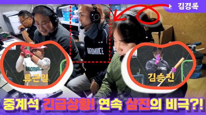 [한스타연예인야구] 가수 김경록 감독 중계 중 개그맨 류근일/김승진 연속 삼진!!